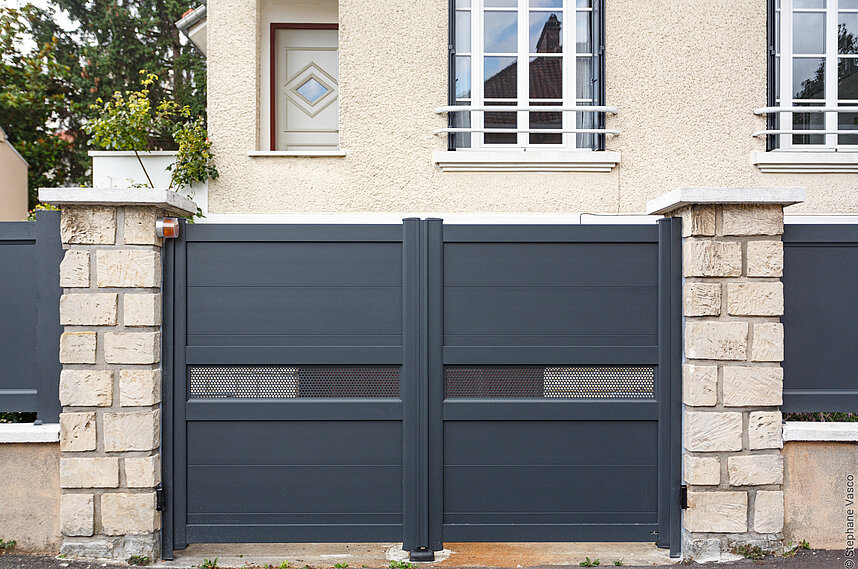 Il peut être battant ou coulissant, et se pilote avec une télécommande, un digicode ou via smartphone.
