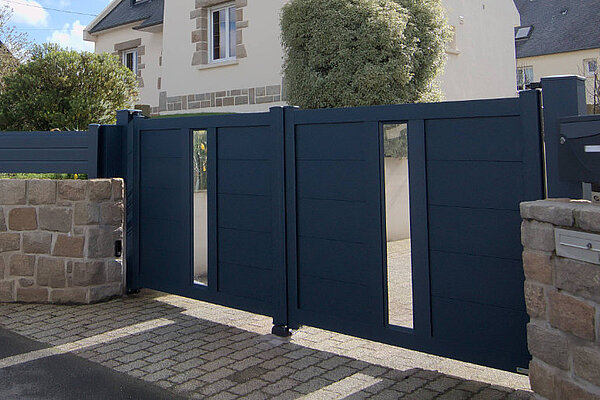 Un portail alu avec un remplissage en tôle lisse ou perforée ? Avec des petites ou de grandes lames, horizontales ou verticales ? Choisissez la ligne Grand Large ! Personnalisez sa hauteur pour une harmonie totale avec votre clôture.