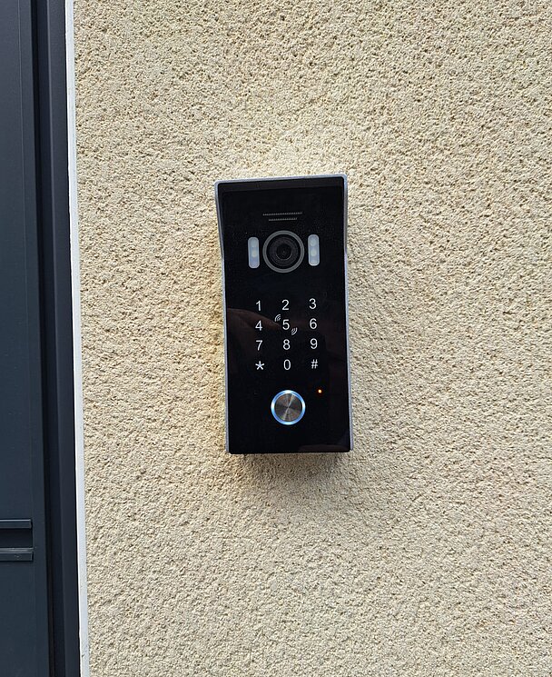 L'installation comprend également un interphone audio/vidéo avec digicode intégré, permettant un contrôle d'accès sécurisé et pratique. Vous pouvez ainsi vérifier et autoriser l'entrée de vos visiteurs facilement.