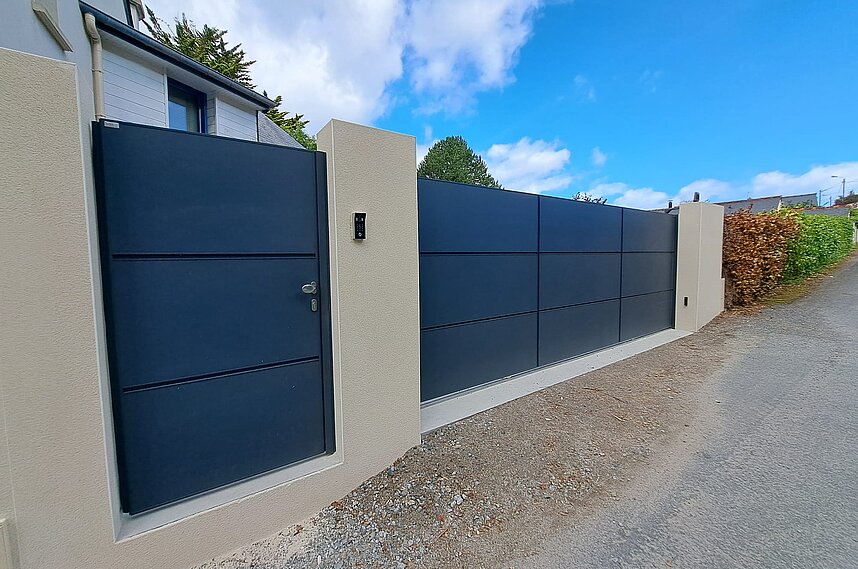 Installation d'un portail coulissant et et son portillon modèle Quadra C6 de chez SIB.