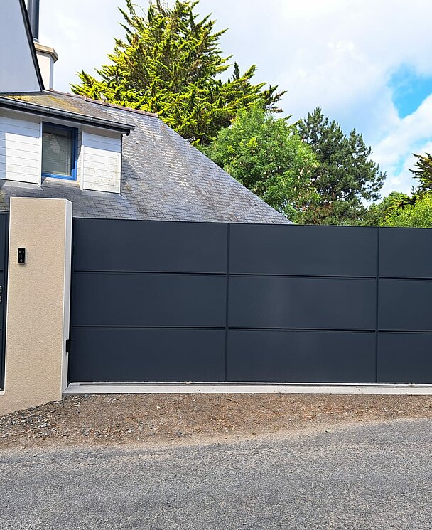 Le portail Quadra C6 se distingue par son design moderne et élégant. La finition en RAL 7016 gris anthracite texturé apporte une touche de sophistication à votre maison, s'intégrant parfaitement à tous les styles architecturaux.