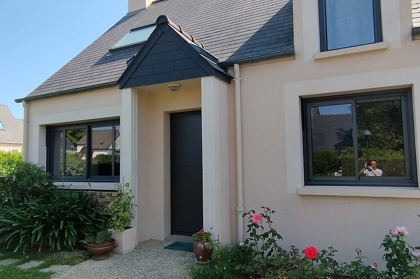 Porte d'entrée, volets solaires et menuiseries en alu