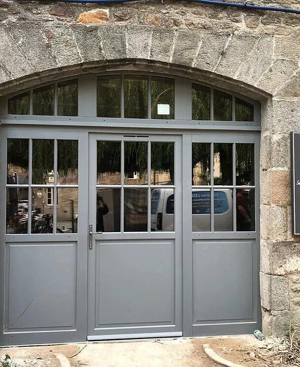 Installation de menuiseries en bois laquées gris RAL 7044 et 7037, pour respecter le charme des maisons de Dinan.