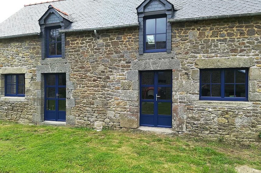 Fenêtres aluminium pour maison en pierre